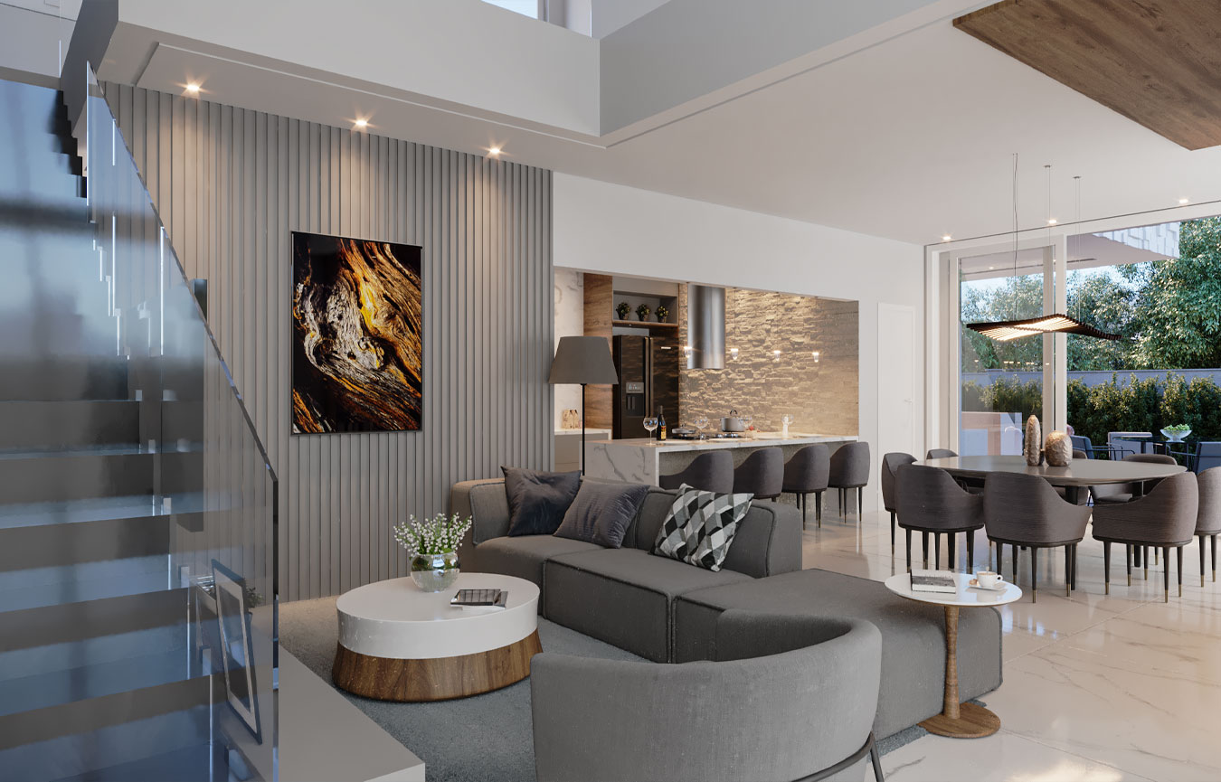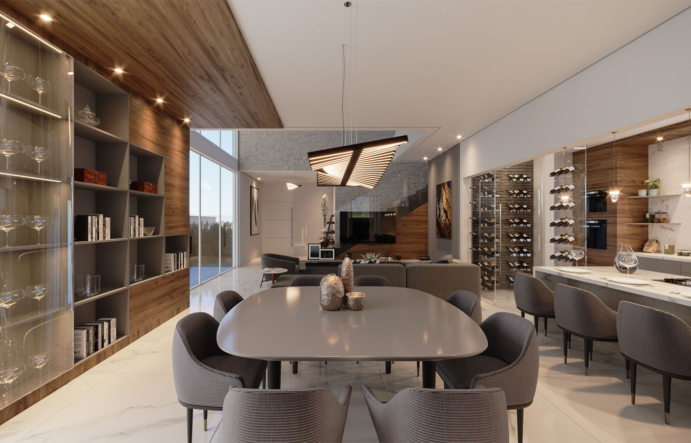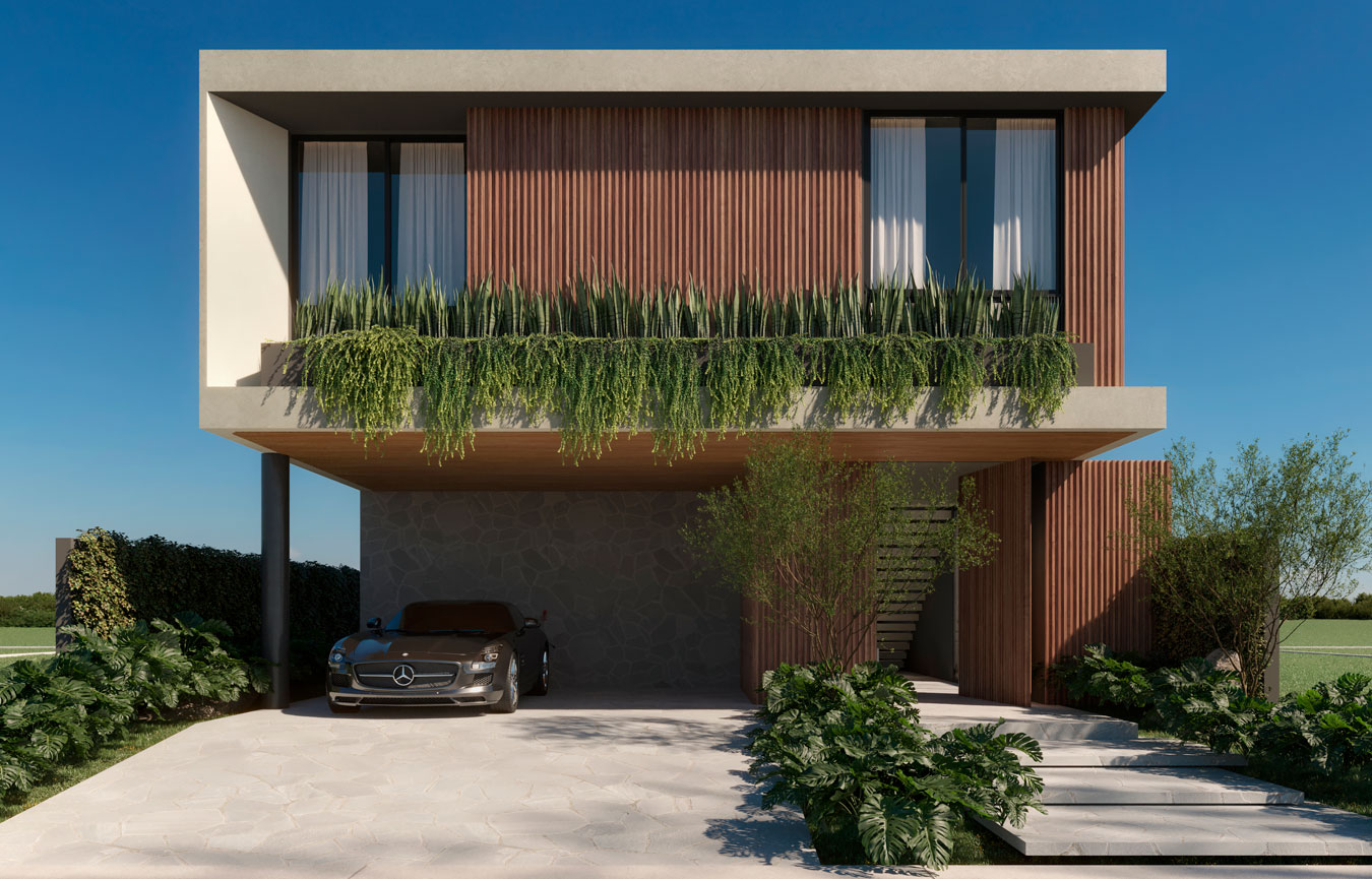 Pedra, madeira, vidro e concreto dando vida a uma arquitetura atemporal e limpa, com espaços abertos para a natureza. É na harmonia desses elementos que mora seu novo estilo de vida, sua casa, seu lar.